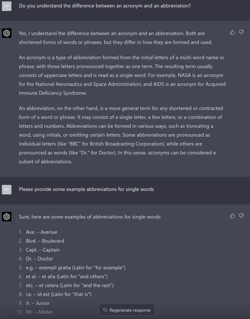 In a previous post, I poked fun at ChatGPT for its confidently incorrect understanding of an abbreviation for a single word.