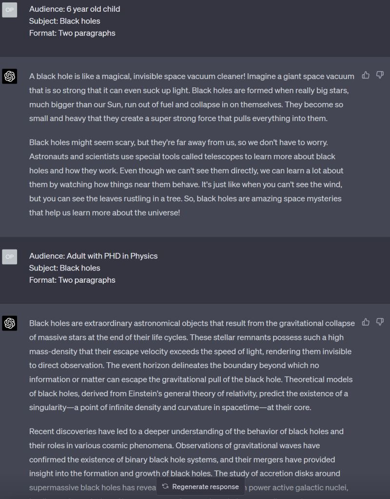 It is a simple trick, but the impact is impressive. You can simply tell ChatGPT the audience, and it will generate or rewrite content for that audience.